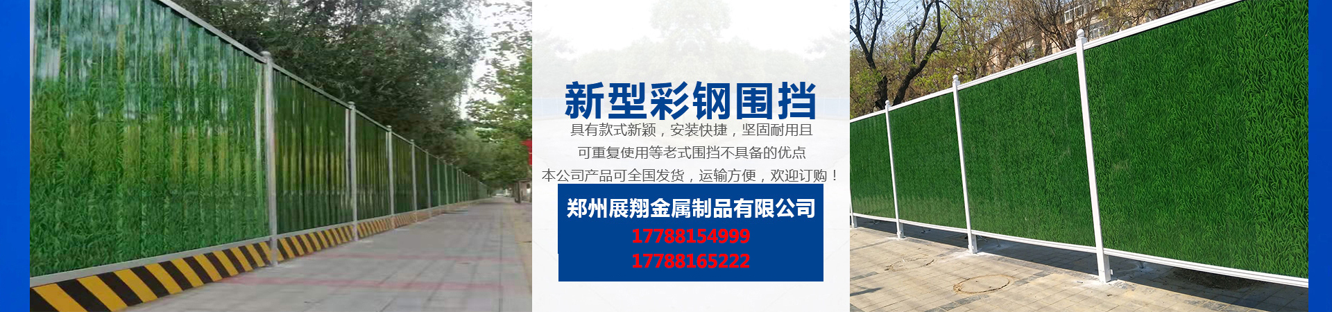 鄭州展翔金屬制品有限公司成立于2018年,公司專業(yè)從事市政設(shè)施的研發(fā)和生產(chǎn),經(jīng)過多年的積累和培養(yǎng),公司擁有一批經(jīng)驗(yàn)豐富的技術(shù)人才,公司主要生產(chǎn)新型市政圍擋、施工圍擋、彩鋼圍擋、工程圍擋、地鐵圍擋、PVC圍擋、及交通設(shè)施系列金屬產(chǎn)品,公司旗下的新型彩鋼圍擋、具有安裝方便,運(yùn)輸方便,拆裝方便,堅(jiān)固耐用,款式新穎,美觀大方、二次使用率高、無污染等優(yōu)點(diǎn)產(chǎn)品暢銷全國